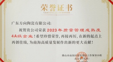 - 【质量强企】硬汉视频在线观看免费观看陶瓷荣获“2023年质量管理成熟度4A级企业”