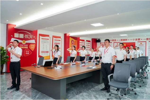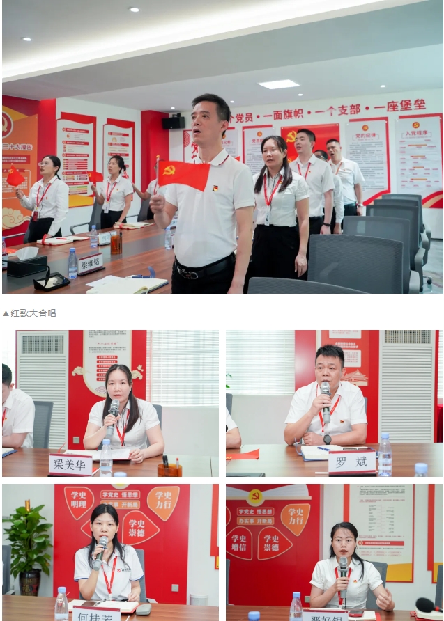 党支部书记周耀灯带领大家重温入党誓词、唱响红色经典,并为全体党员讲了一堂专题党课。众人在重温誓词过程中接受精神洗礼,不忘初心;在嘹亮红歌中提振干事创业精气神;在学习交流中切实把学习成果落实到行动上、体现在工作中。