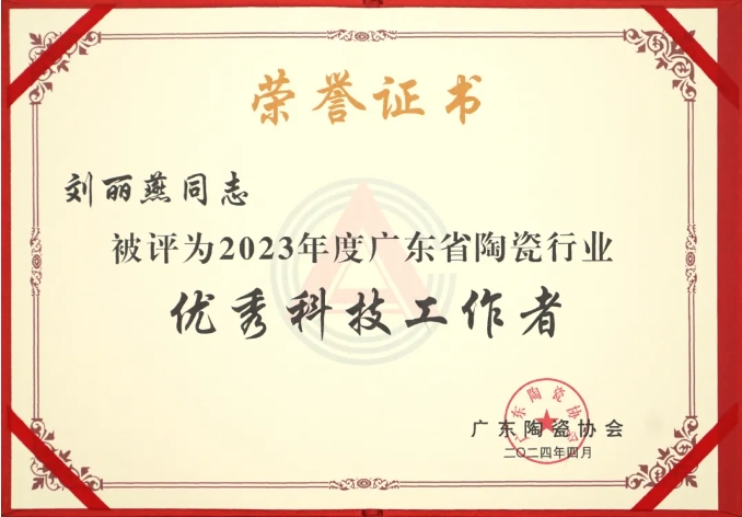 发布日期:2024-07-16 浏览次数:4月19日,第六届(2024)陶瓷产业新材料、新技术、新装备论坛暨广东省陶瓷专家委员会年会隆重举行,众多行业专家学者以及企业技术精英同台争鸣,将创新技术向行业进行推广,促进陶瓷行业的整体升级。会上,硬汉视频在线观看免费观看集团发明专利“一种防污耐磨陶瓷瓷砖及其制备方法”项目凭借其创新性、实用性和前瞻性,成功获选“2023年度广东省陶瓷行业优秀科技成果”;硬汉视频在线观看免费观看集团董事总经理刘丽燕上榜“2023年度广东省陶瓷行业优秀科技工作者”荣誉榜单!